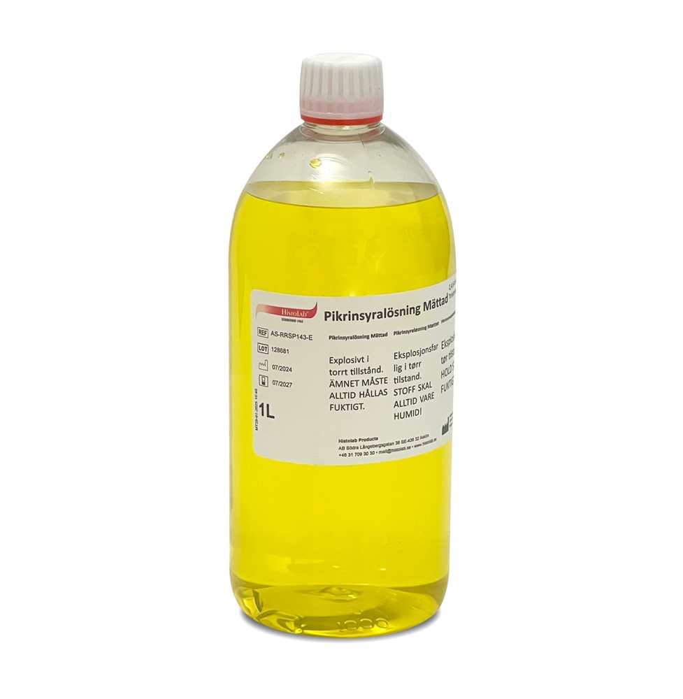Används tillsammans med formaldehyd, ättiksyra eller etanol i fixeringsblandning. Svagt urkalkande effekt. Färgar fixerade preparat svagt gula. Färgen sköjls bort av etanolen i efterbehandlingen. Lämplig till Van Gieson och Bouins lösning.