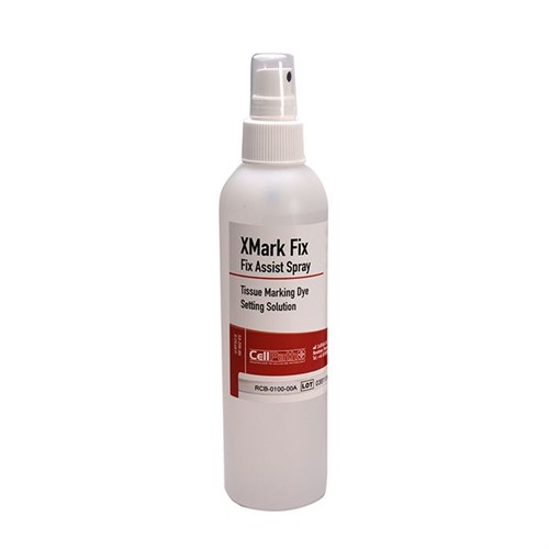 För märkning av feta vävnader (bröst, mesenteriskt fett) rekommenderas att använda produkten XMark Fix. Spruta produkten XMark Fix på vävnadsytan som precis har färgats med märkfärg och vänta en minut tills det har torkat.